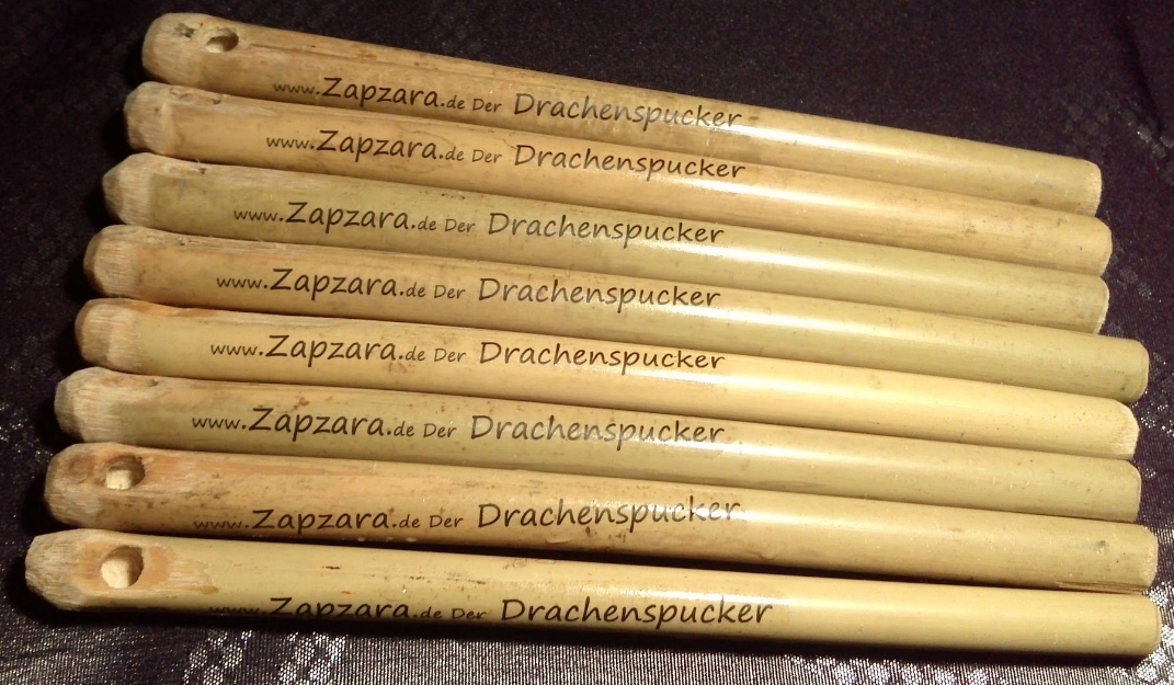 www.Kleiderkerker.de Wir wollen demnächst das Feuerspucken auf einer ungefährlichen Art für große Kinder und Erwachsene vor Ort anbieten. Auch die Drachenspucke und der hölzerne Drachenspucker für das Heim-Vergnügen wird vor Ort zu erwerben sein. Weitere Informationen folgen in Kürze, die Vorbereitungen laufen auf Hochtouren. Hier schon mal die ersten acht Prototypen des Drachenspucker. Diese werden einen Außendurchmesser von ca. 9mm bis ca. 15mm und eine Länge von ca. 19cm haben. Die Drachenspucker werden in Handarbeit einzeln von uns in unserer Werkstatt aus natürlich gewachsenem Holz gefertigt und zusätzlich mit einer antibakteriellen Schutzlackierung überzogen. Keiner ist wie der Andere und "echt" nur mit unserem Aufdruck! [Die Lackschicht entspricht der DIN V53160 (Speichel und Schweißecht) und ist geprüft nach DIN EN 71, Teil 3 (für Spielzeuge geeignet). Der integrierter Hygieneschutz verhindert langfristig das Ansiedeln von Bakterien und Pilzen auf den lackierten Holzoberflächen, der Hygieneschutz ist aber kein Ersatz für die normalen Reinigungsverfahren]